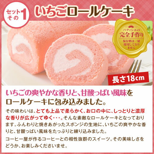 【澤井珈琲】送料無料 冬のおなかいっぱいスイーツセット(いちごのロールケーキ/苺のロールケーキ/チーズケーキ/コーヒー豆/珈琲豆)
